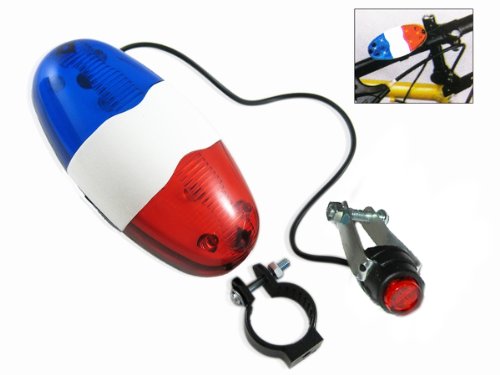 --> Details : Police 4-Melody Bicycle Power Horn Siren with 6-LED Red Flashing and Mount